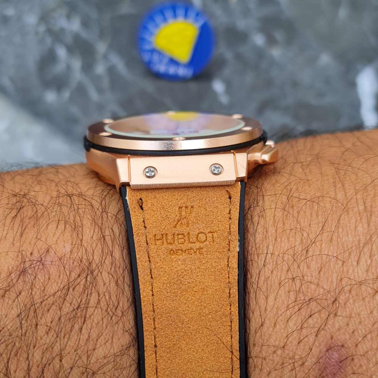 ساعت مردانله هابلوت کد 5539 بند قهوه ای قاب رزگلد صفحه سفید