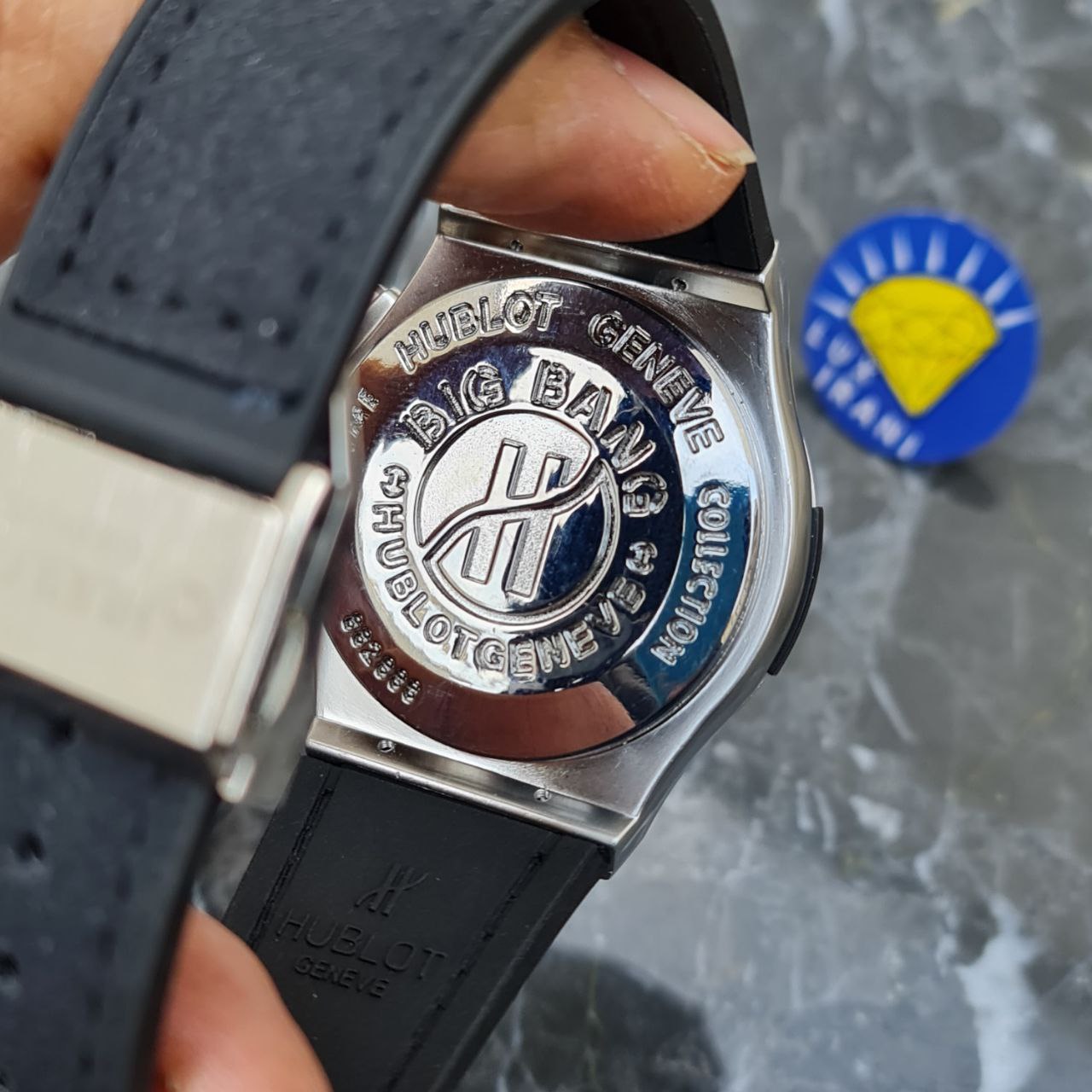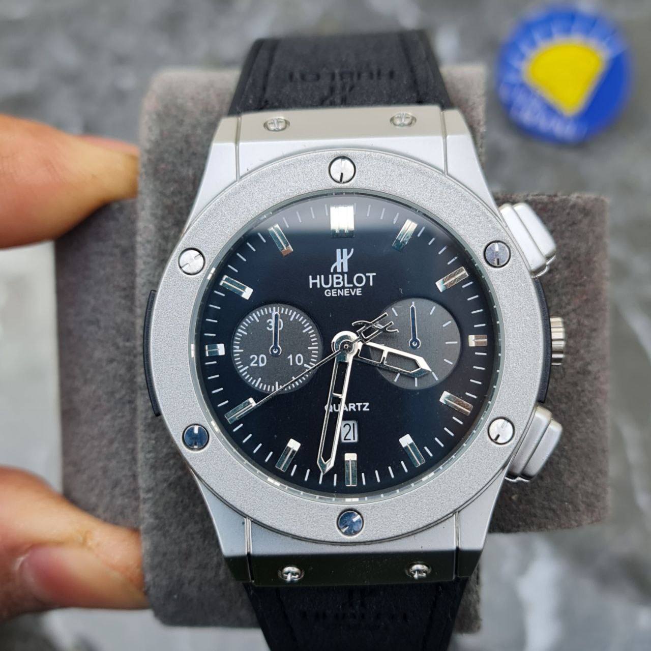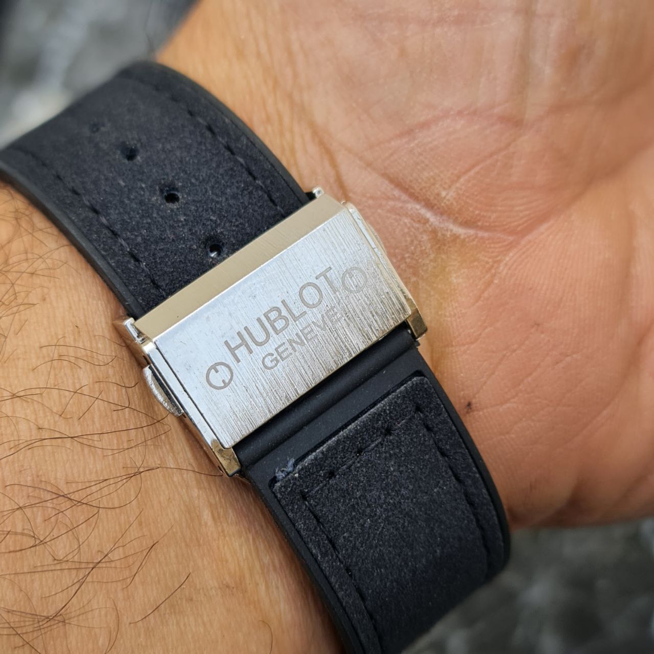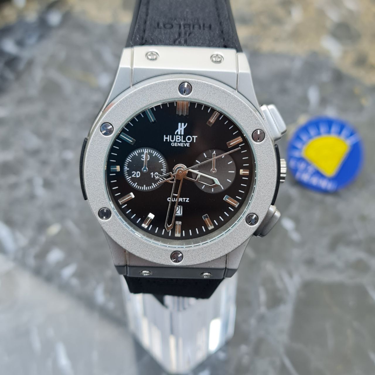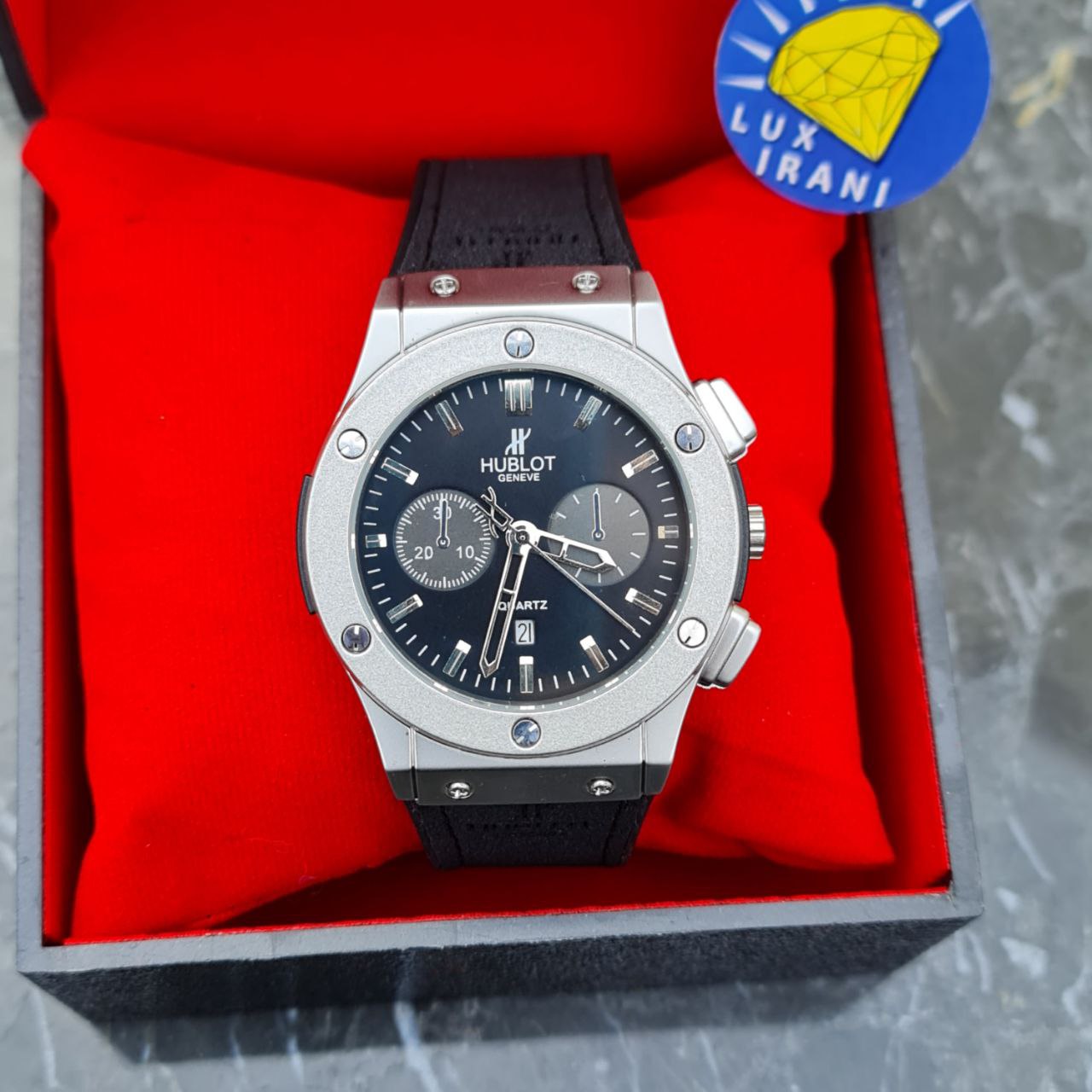 ساعت مردانله هابلوت کد 5549 بند مشکی قاب نقره ای صفحه مشکی