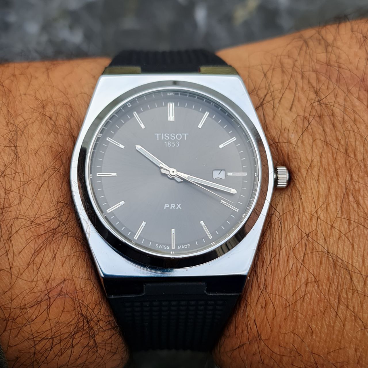 ساعت مردانه تیسوت کد 4611 بند پیو قاب نقره ای صفحه مشکی