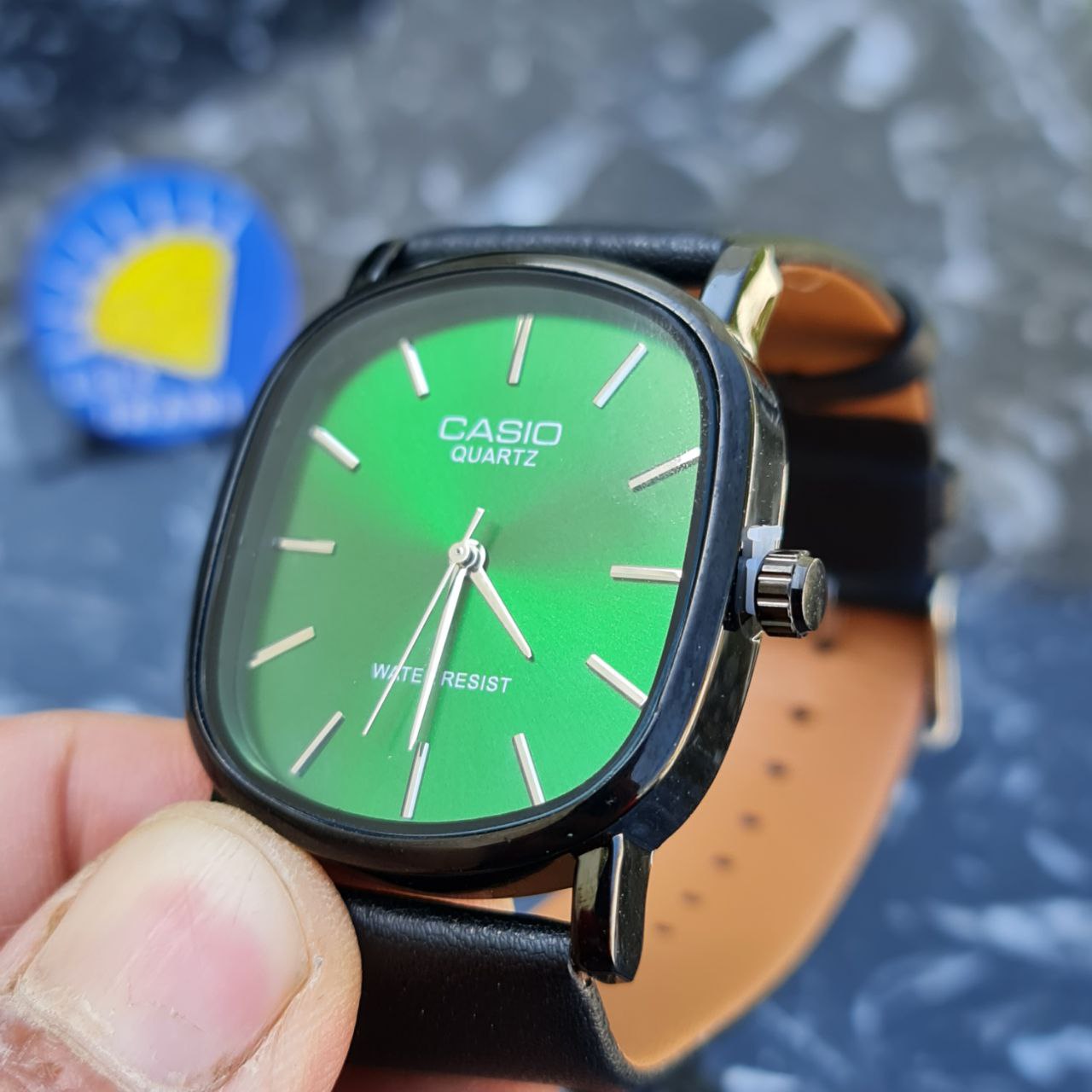 ساعت مردانه کاسیو اولدمانی چرم کد 4515 بند مشکی قاب مشکی صفحه سبز