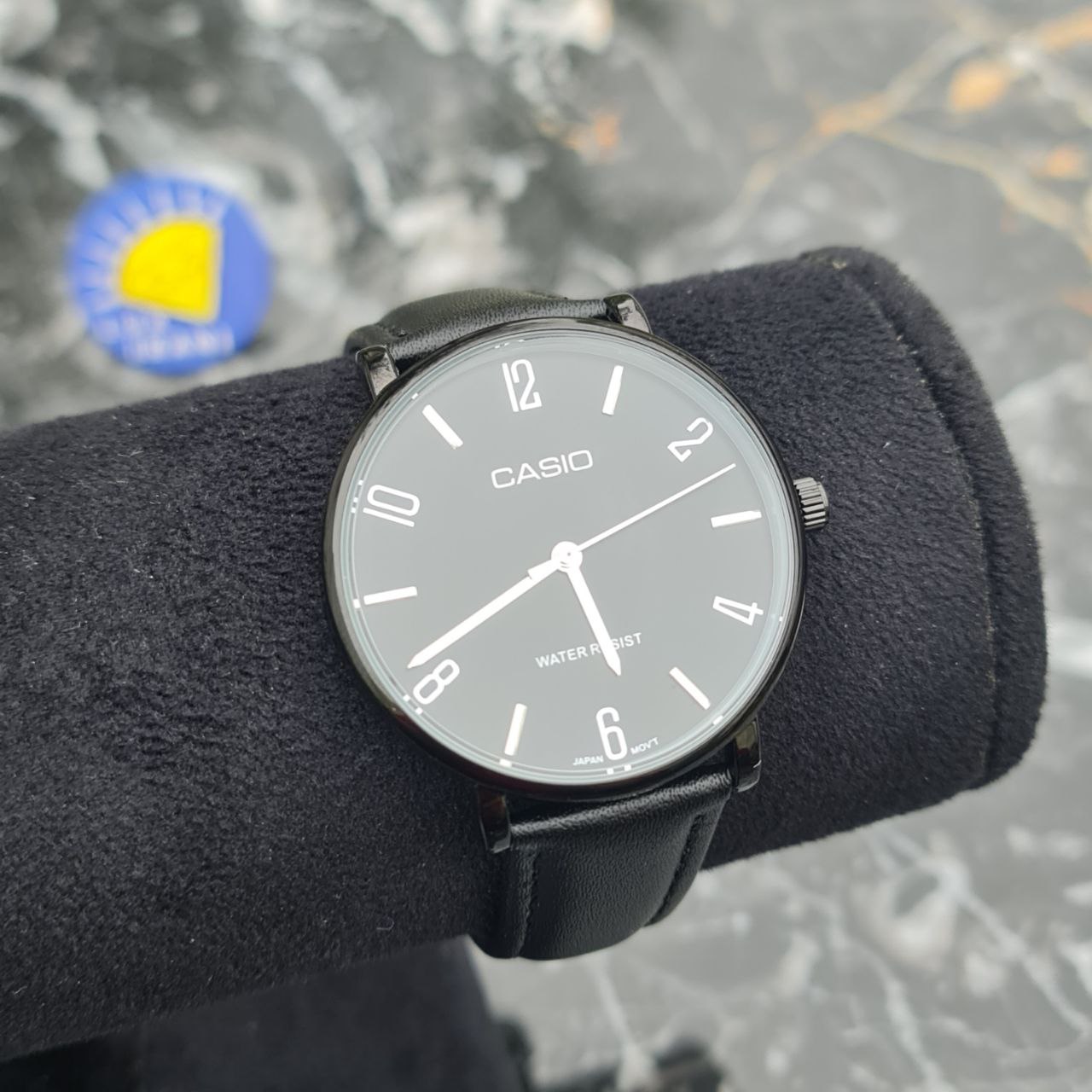 ساعت مردانه کاسیو کلاسیک چرم کد 5340 مشکی صفحه مشکی