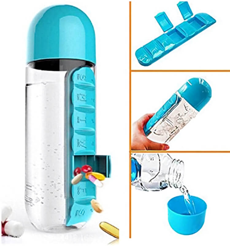 مدیریت همزمان تغذیه و مصرف مکمل یا دارو به یک چالش روزانه تبدیل شده است. شیکر همراه جاقرصی دقیقاً برای حل همین مشکل طراحی شده؛ محصولی چندکاره که هم نقش یک شیکر حرفهای را دارد و هم بهعنوان یک جاقرصی منظم و قابلاعتماد عمل میکند. این محصول برای افرادی که به سلامت، ورزش و نظم شخصی اهمیت میدهند، یکی از هوشمندانهترین لوازم کاربردی روزمره محسوب میشود. قمقمه همراه جا قرصی دار یک محصول 2 در 1 می باشد زیرا هم میتوان از آن به عنوان یک بطری آب و هم به عنوان جا قرصی استفاده کرد. این جا قرصی 7 محفظه جدای از هم دارد که هرکدام دارای درب جداگانه میباشند که برای شما امکان تفکیک قرص های خود و همچنین همراه داشتن قرص برای یک هفته را فراهم میکند و میتوانید دسترسی همزمان به آب و دارو داشته باشید.