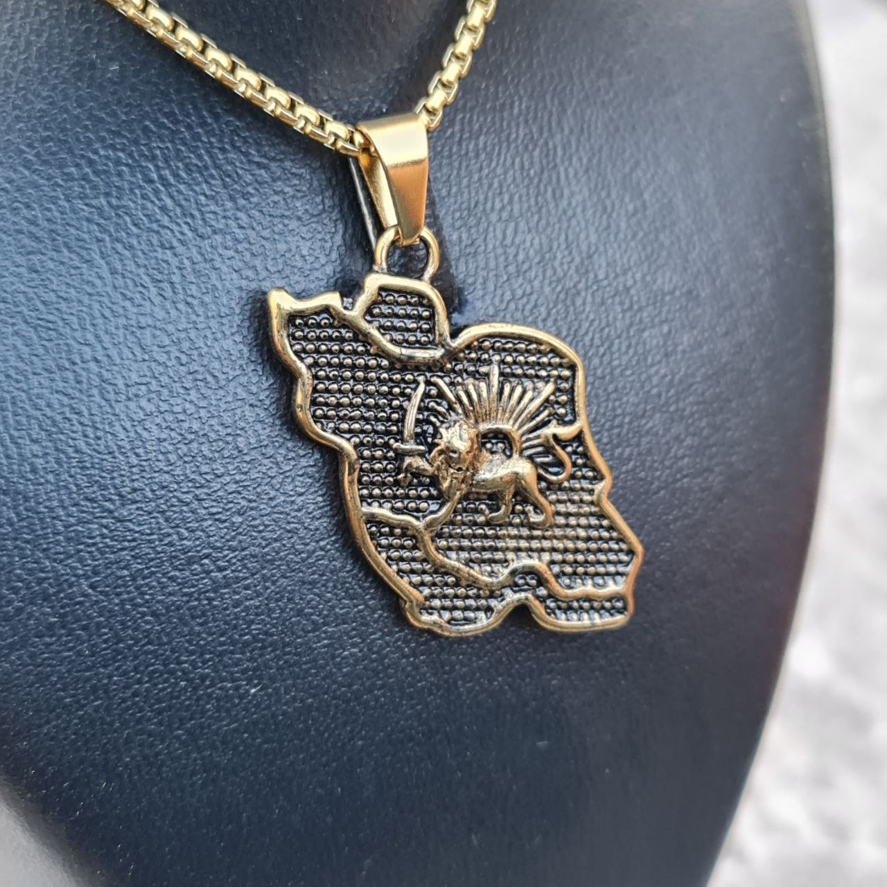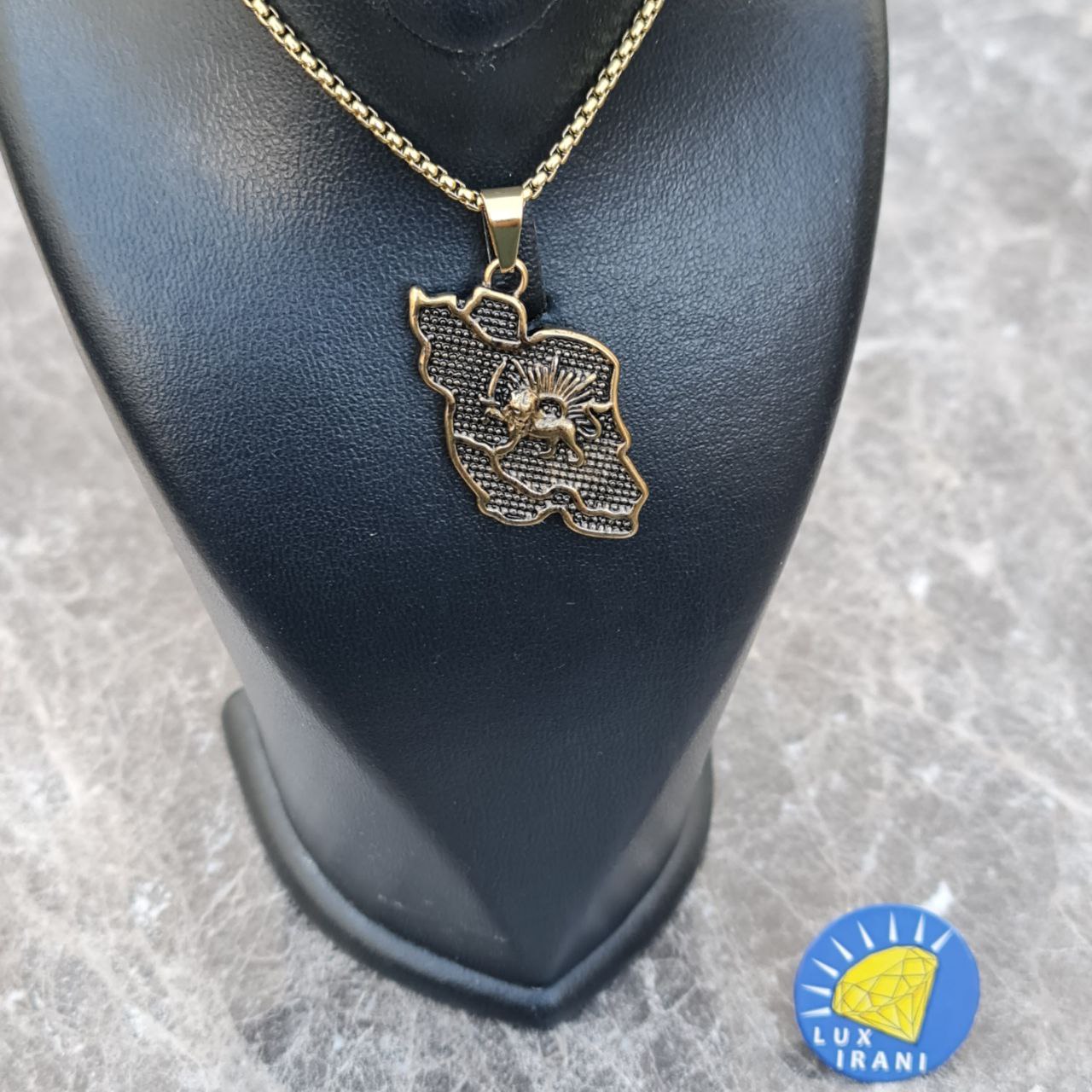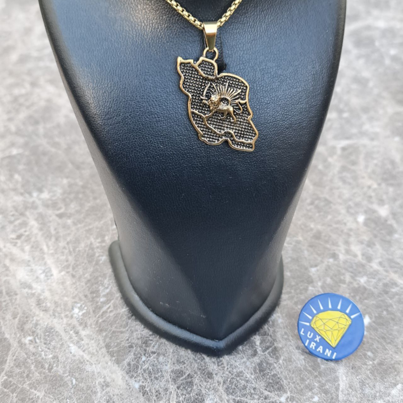 گردنبند نقشه ایران و شیر و خورشید | نماد اصالت، قدرت و هویت ایرانی