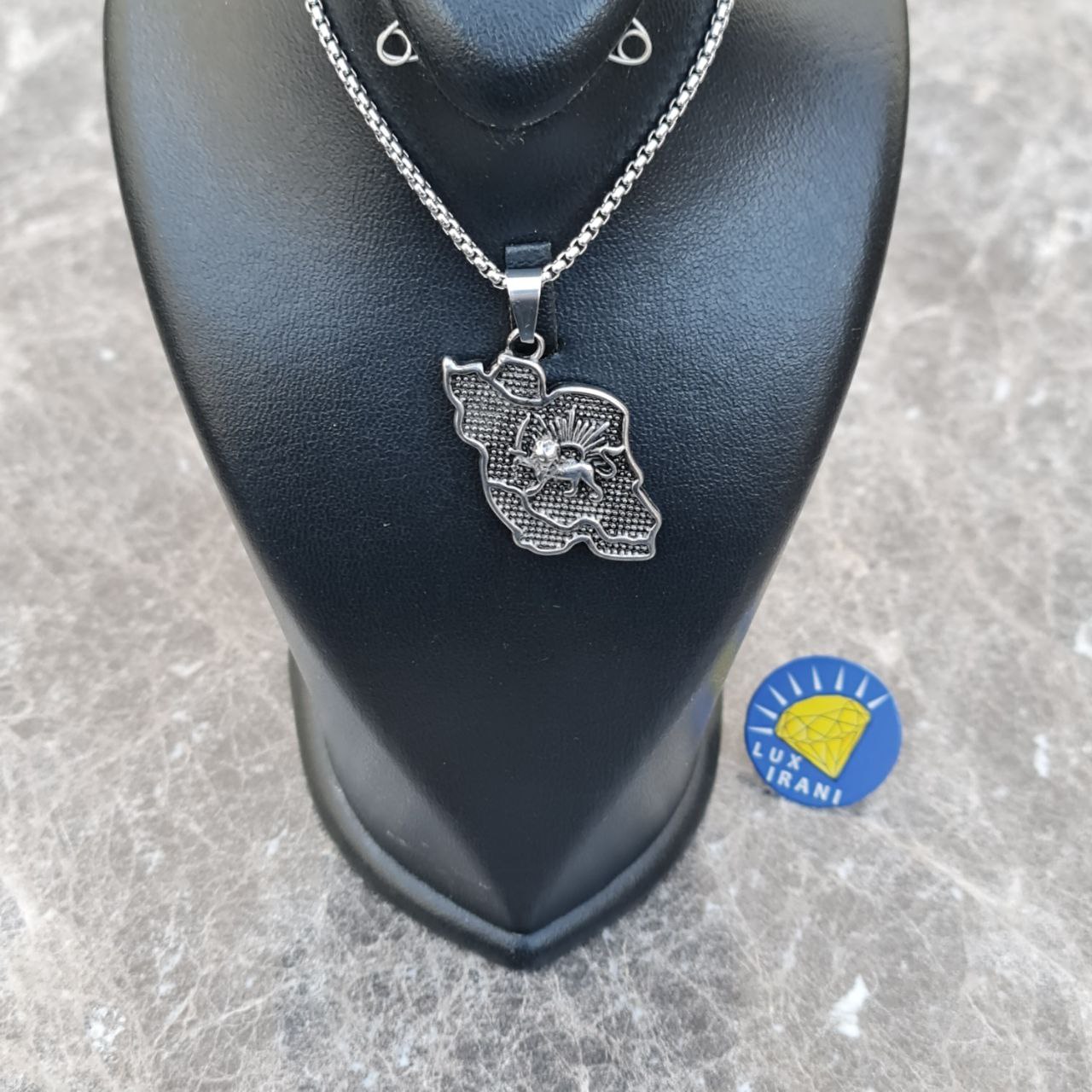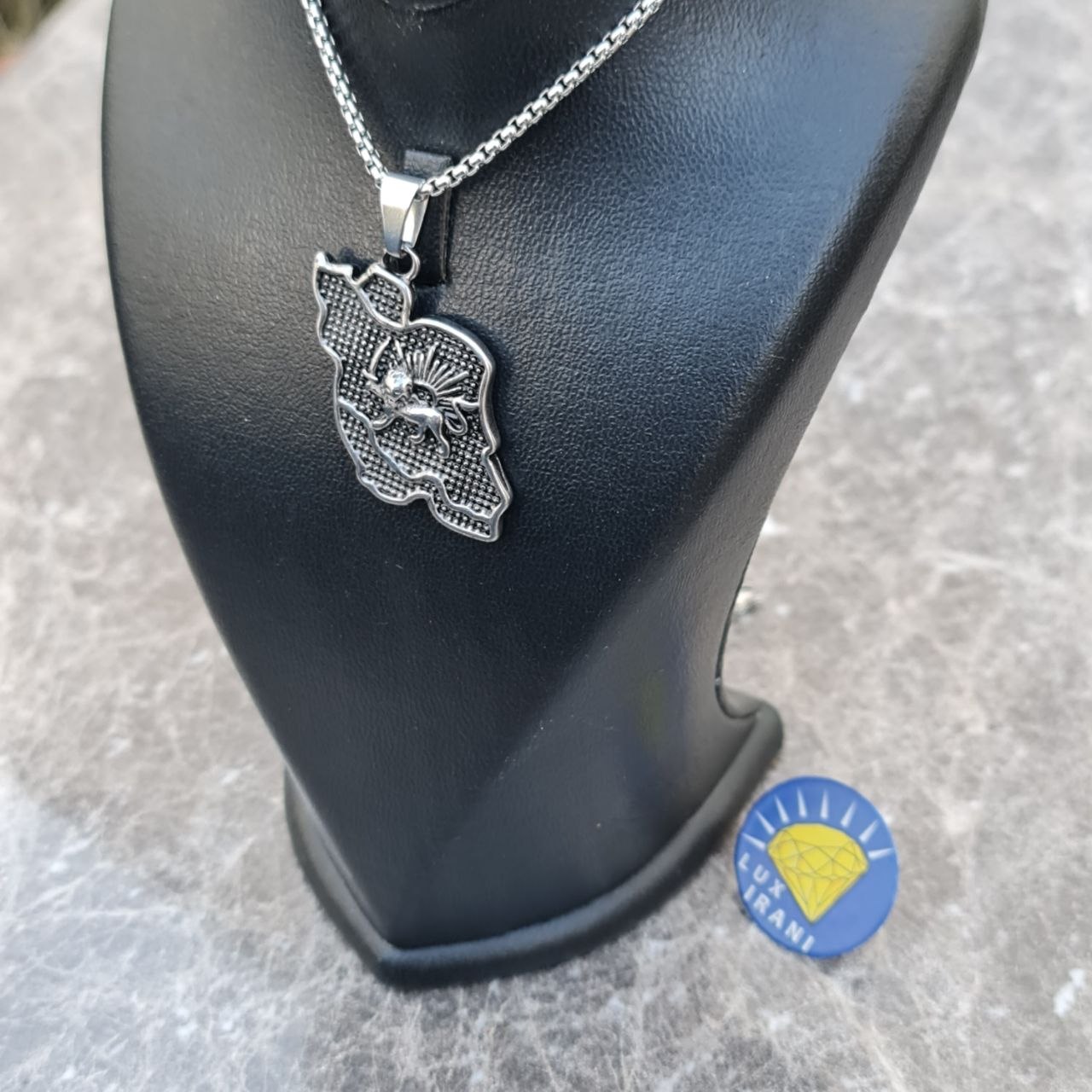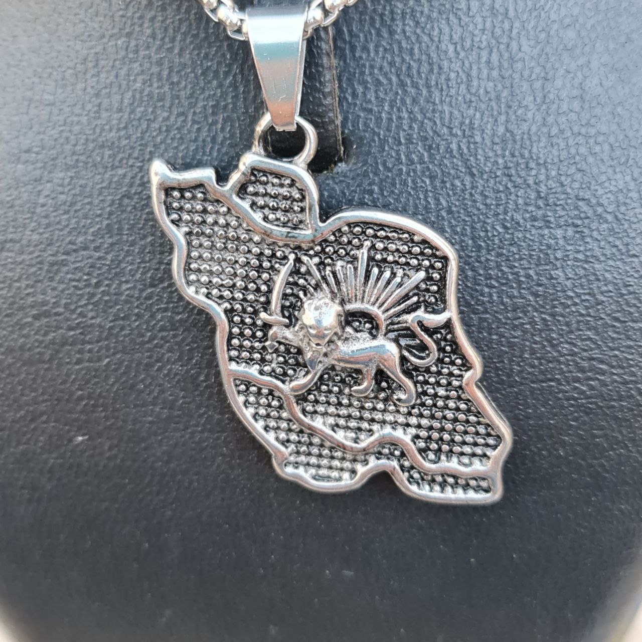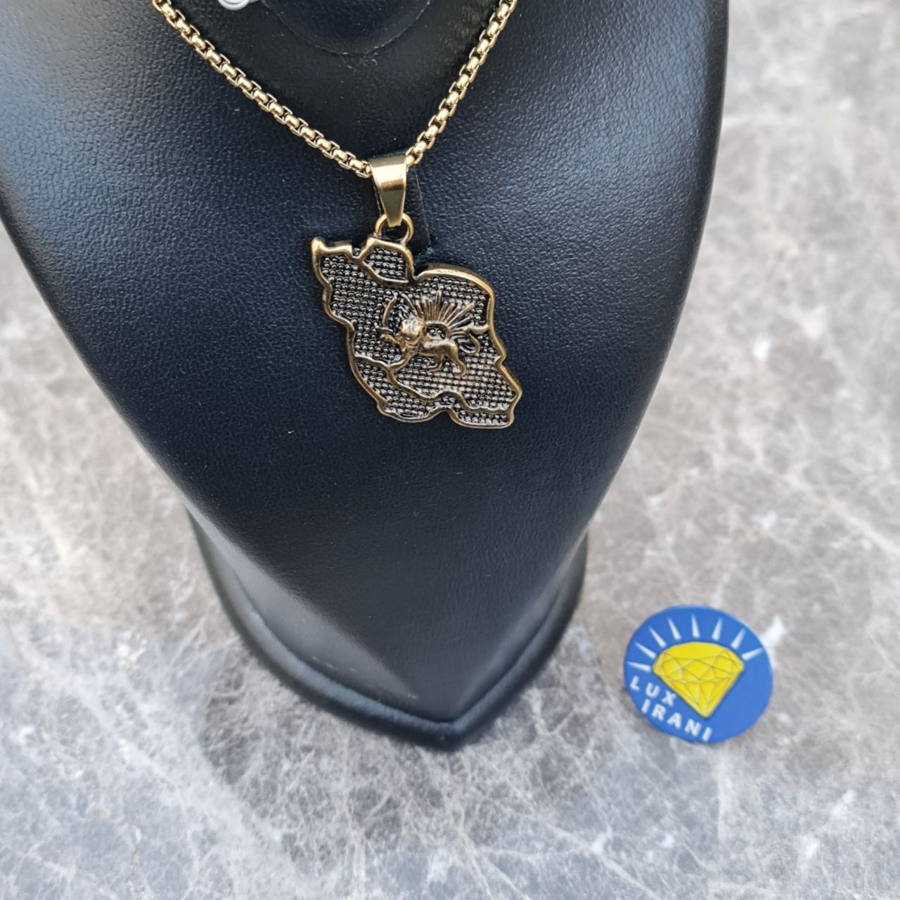 گردنبند نقشه ایران و شیر و خورشید | نماد اصالت، قدرت و هویت ایرانی